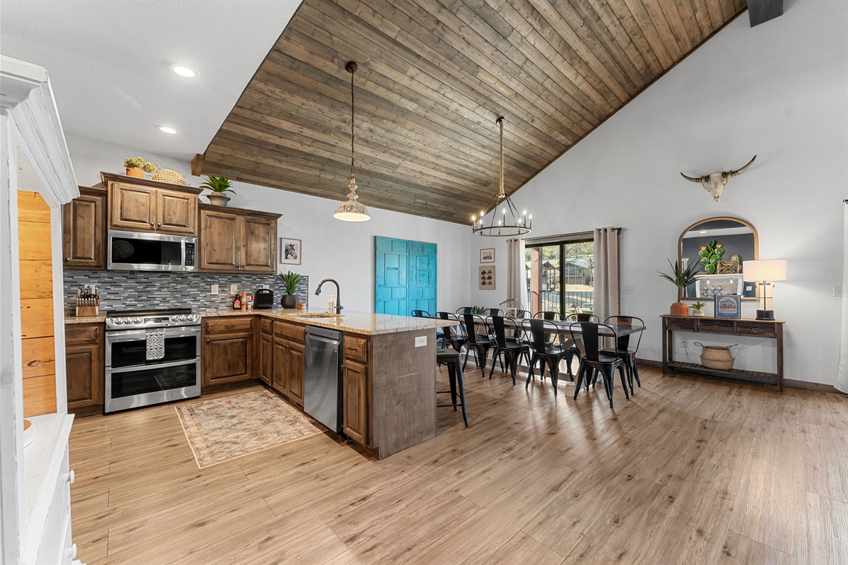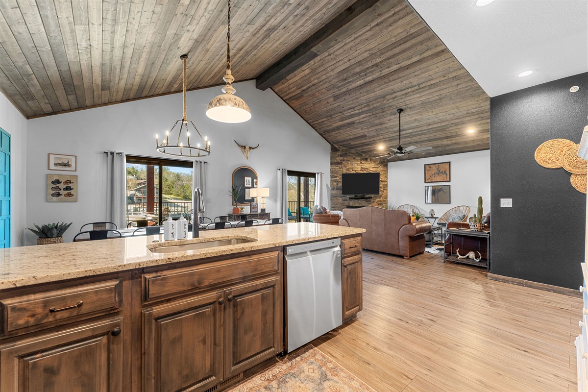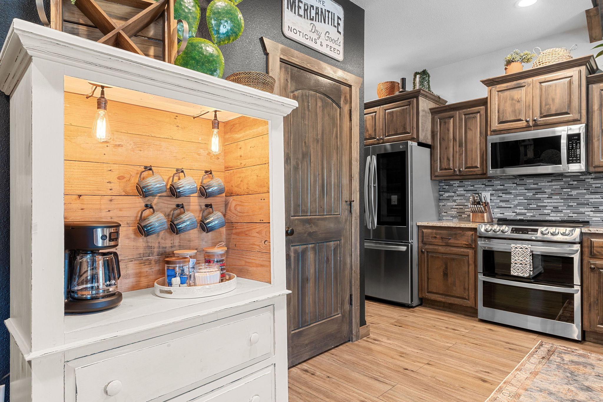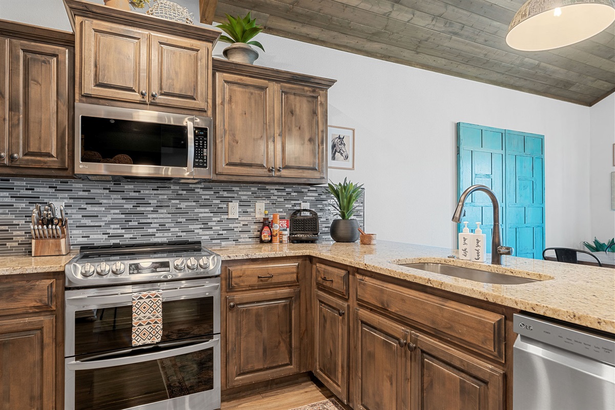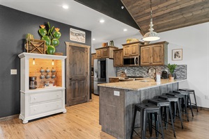 The fully stocked kitchen with granite countertops makes group meals easy, while the oversized dining table (seats 12) is perfect for dinners, games, and late-night conversations.