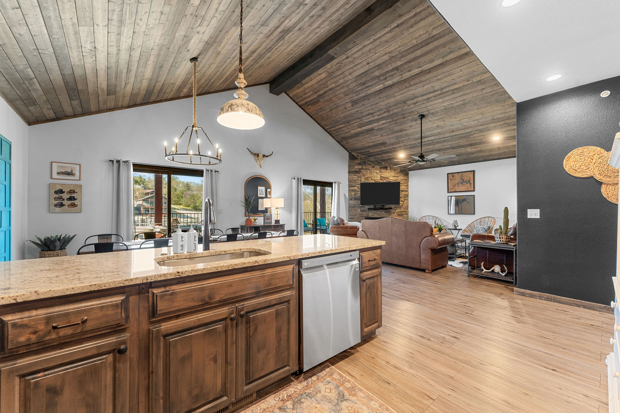 Tucked away on Indian Point near Table Rock Lake, this freshly designer-updated retreat was created for unforgettable group getaways. With 4 bedrooms, a fun bunk room, and a bonus game space, it’s the perfect mix of style, comfort, and location—just minutes from Silver Dollar City and all the best of Branson.