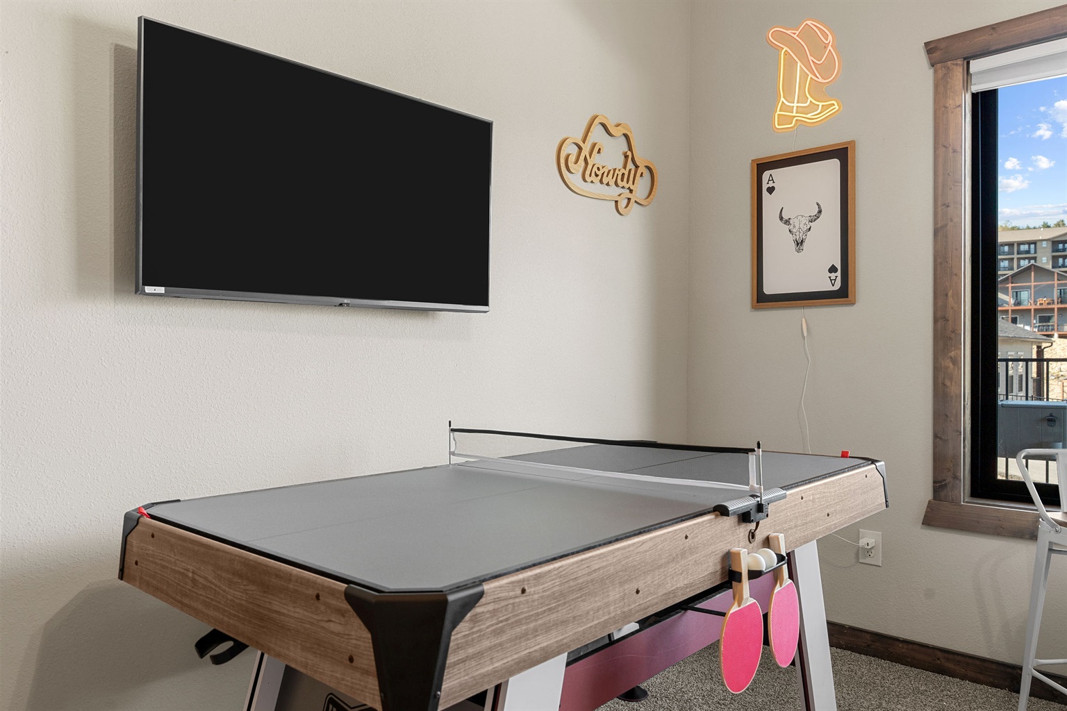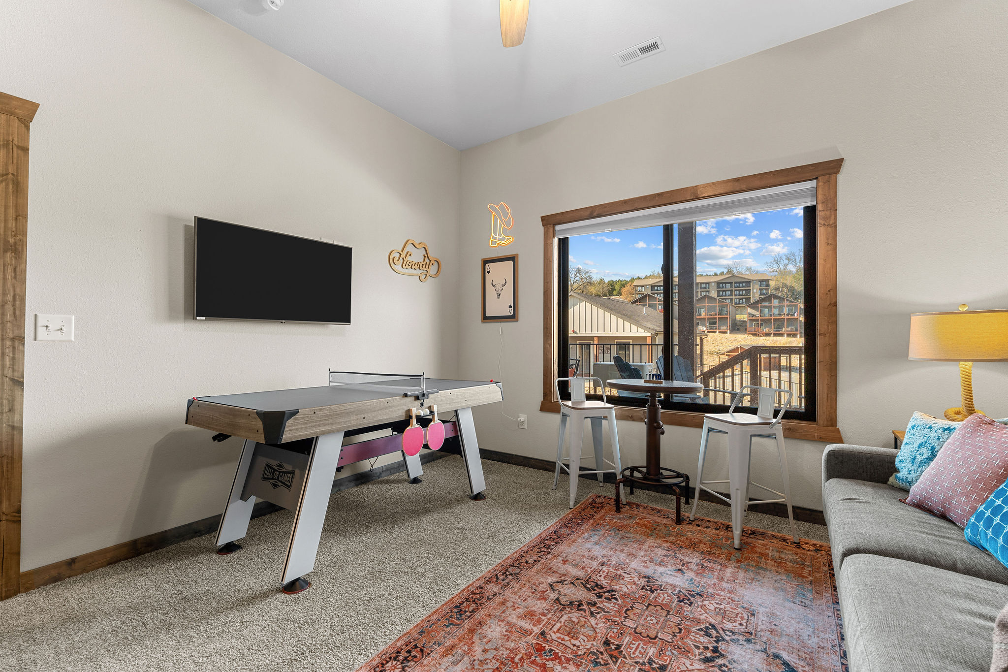 Downstairs, you’ll find a fun game room and bonus hangout area with direct access to the balcony—ideal for kids, teens, or giving everyone space to spread out.